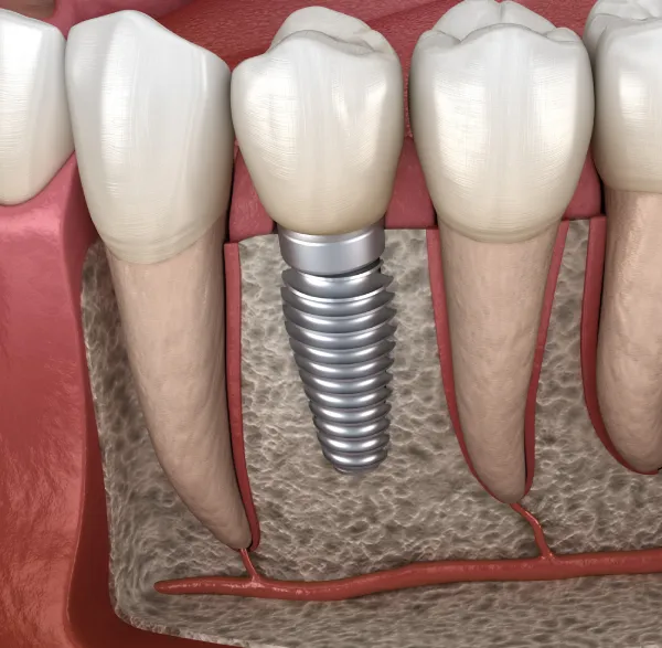 Имплант — это титановый или циркониевый «аналог корня», который вживляется в челюстную кость и служит опорой для коронки. В отличие от мостовидных протезов, имплантация не требует обтачивания здоровых соседних зубов, а по прочности и функциональности полностью заменяет утраченный зуб. Современные системы (Nobel Biocare, Straumann, Astra Tech, российские MIS и «Конмет») обеспечивают приживаемость до 98% при грамотном подходе.